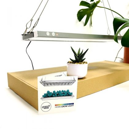 The Professional Home Grow Light has an array of full spectrum LED cultivation bulbs that simulate natural sunlight. Combined with good nutrition and water, your plants will have everything they need to grow happily and healthily indoors all year-round.