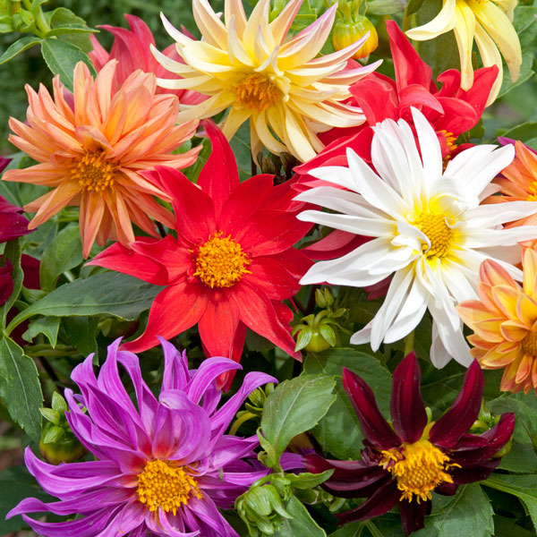 Dwarf, bushy plants with cactus flowered blooms in beautiful mixed colours. Ideal for growing in borders or containers. Height, 40cm. Half Hardy Perennial, protect over winter or lift and store in dry cool conditions. x1 Packet of Seeds. Flowering time: June to November, Preferred conditions: Full sun, or part shade.
