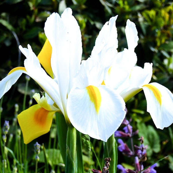 Vibrant beautiful white iris with signature yellow blotches on each petal. Plant centre of borders or in containers for stand out eye catching colour. Height: 60cm, Flowering time: June - July, Preferred conditions: full sun or part shade. x10 bulbs for planting.