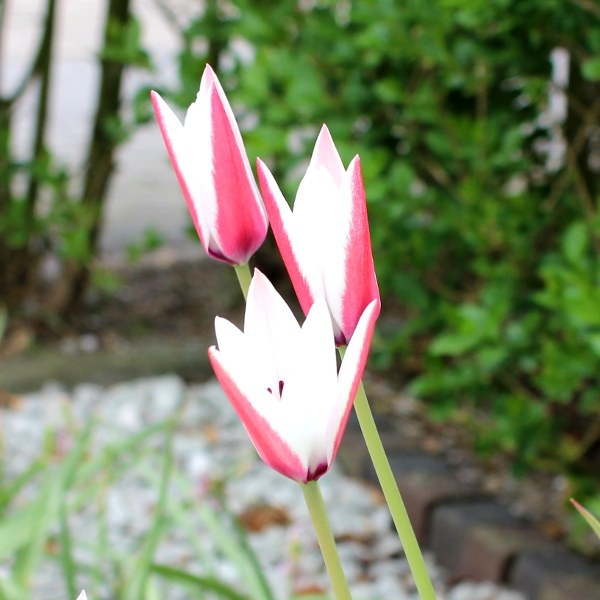 Smaller species tulipa with narrow pointed flowers which are brilliant white with cerise tepals. Works well for colonising a patch of ground or for a showy container display. x4 top size (6+) bulbs to plant in pots, containers and borders. Height: 40 - 60cm, Flowering time: April to May, Preferred conditions: Full sun, or part shade.